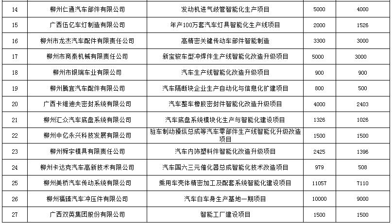 自治區(qū)工業(yè)和信息化廳擬支持2021年汽車行業(yè)企業(yè)智能化改造升級項目公示(2020-12-17)